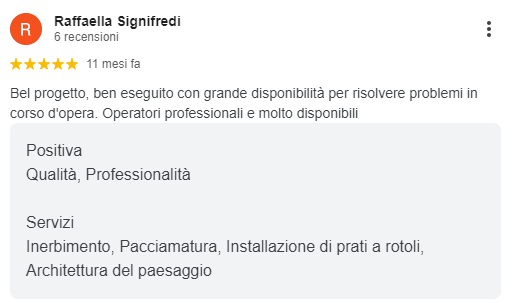 Progettiamo e realizziamo spazi verdi senza compromessi: ci dedichiamo con professionalità a chi è alla ricerca del bello, attraverso proposte di valore e scelte mirate che rispettano le vocazioni della committenza.